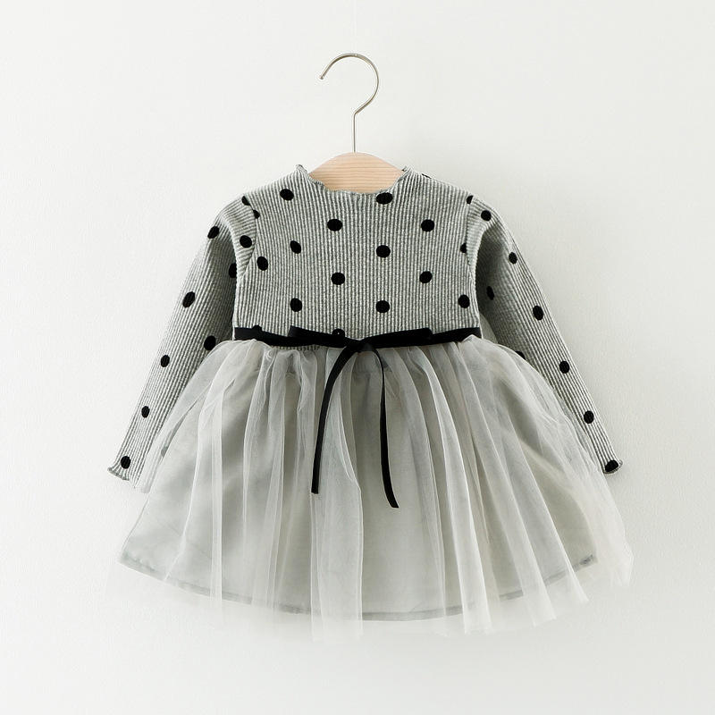 ใหม่แฟชั่นแขนยาวเด็กผู้หญิงถักลายจุดพิมพ์ชุดเดรสเจ้าหญิงเด็กฤดูใบไม้ผลิฤดูใบไม้ร่วงชุด