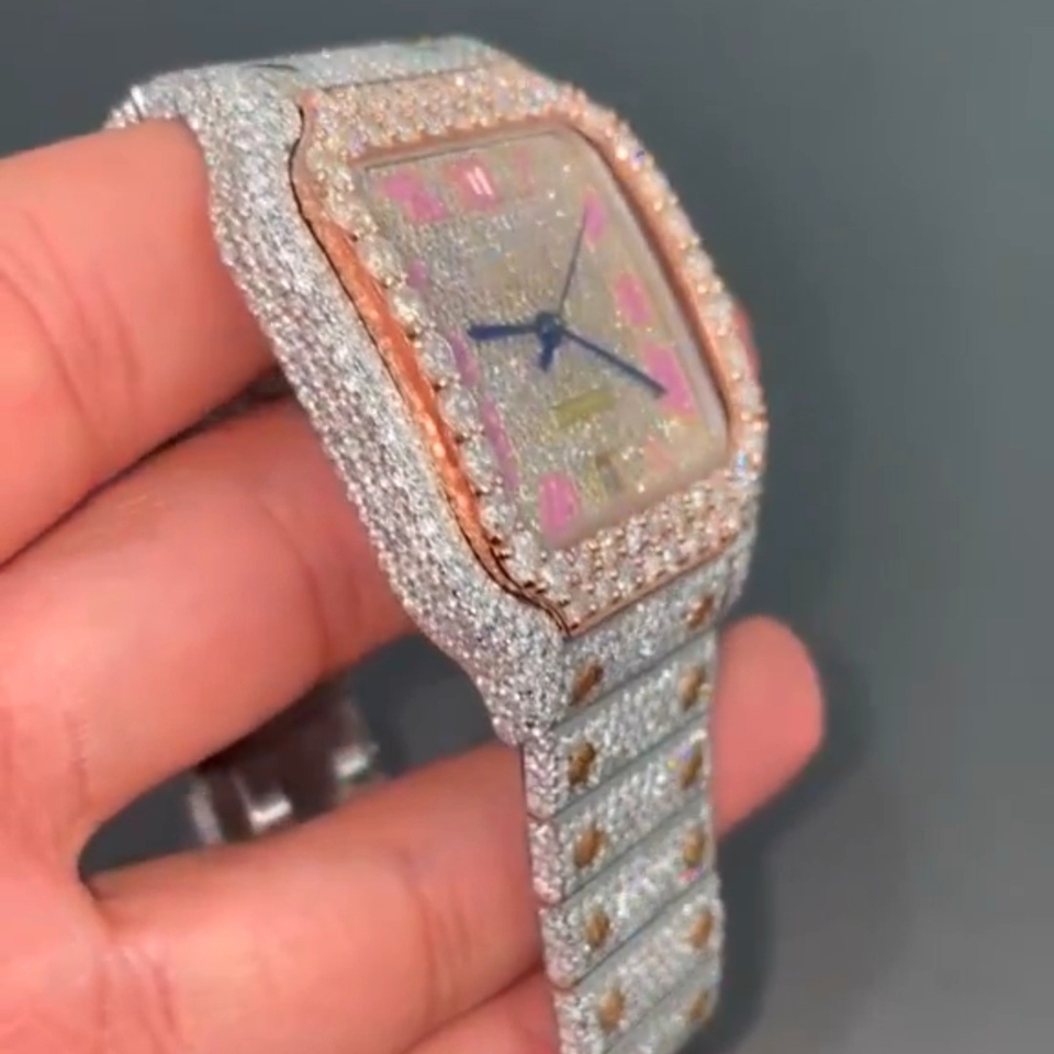 นาฬิกาข้อมือผู้ชายสุดหรู ดีไซน์ใหม่ สไตล์วินเทจ ตัวเรือนสแตนเลสสตีล ประดับเพชรโมอิสซาไนต์ VVS ระดับพรีเมียม พร้อมโลโก้สั่งทำพิเศษ กลไก ETA