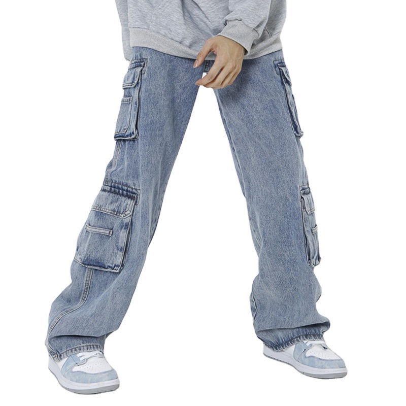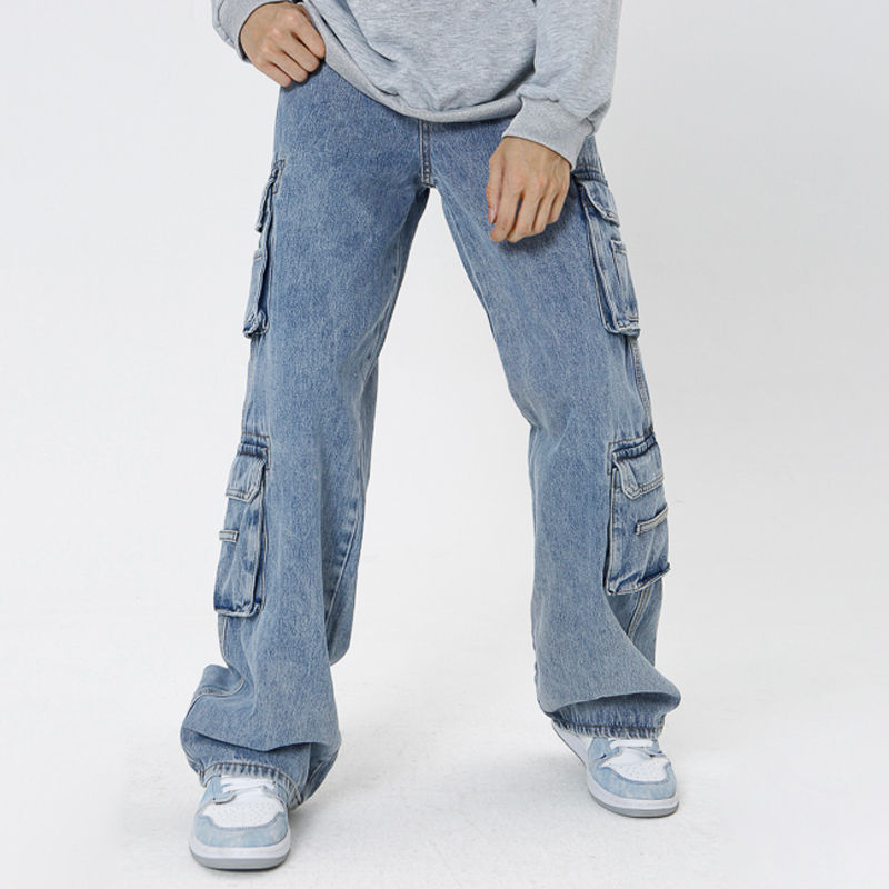 กางเกงยีนส์แฟชั่นใหม่สำหรับผู้ชาย คุณภาพสูง กระเป๋าแบบกำหนดเอง สไตล์สตรีทแวร์ ทรงหลวม ทันสมัย