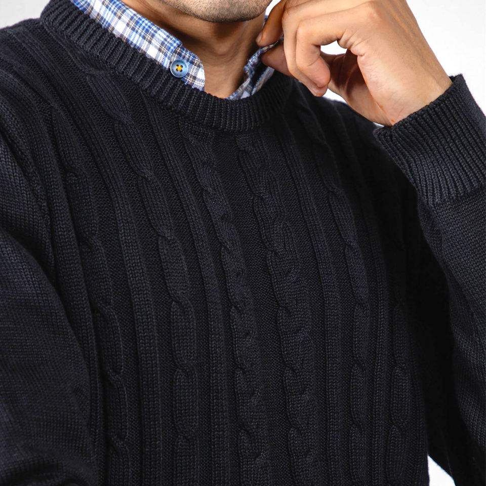 สเวตเตอร์คอกลมแขนยาวสำหรับผู้ชาย, สเวตเตอร์ถักเข้ารูปผ้าฝ้ายแฟชั่นใหม่