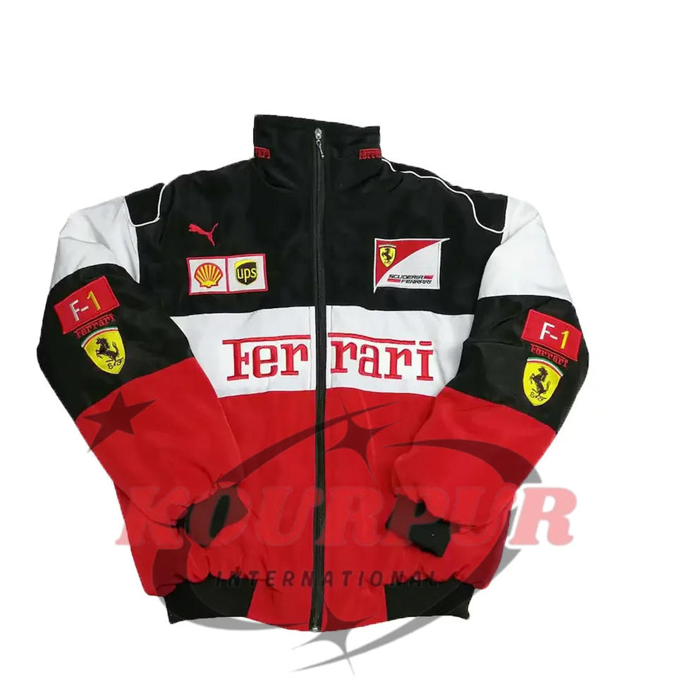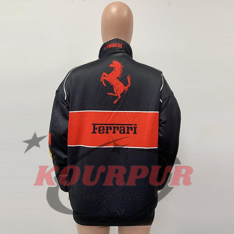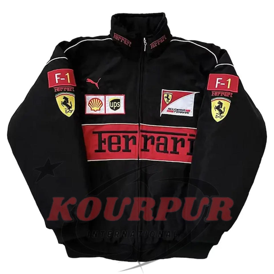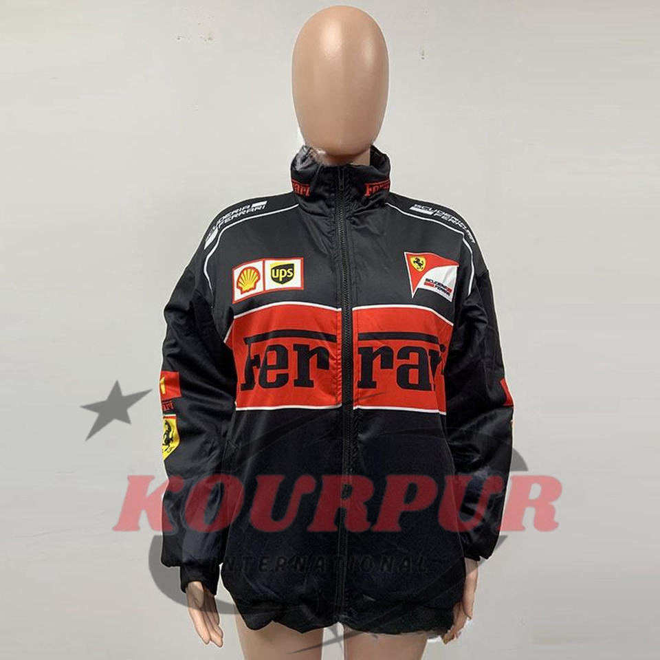 เสื้อโค้ทผู้ชายสไตล์วินเทจสไตล์สปอร์ตมีซิปพิมพ์ลายเสื้อแจ็กเก็ตแข่งรถแขนยาว F1