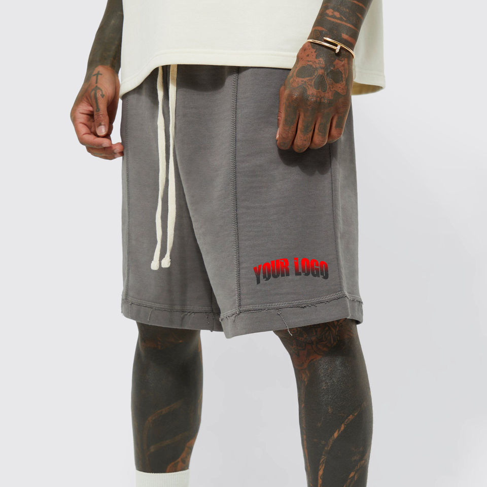 กางเกงขาสั้นลำลองแฟชั่นใหม่ของผู้ชายผ้าฝ้ายสีดำแห้งเร็วระบายอากาศได้ดีโลโก้ DTF แบบกำหนดเองเอวยางยืดทนทาน