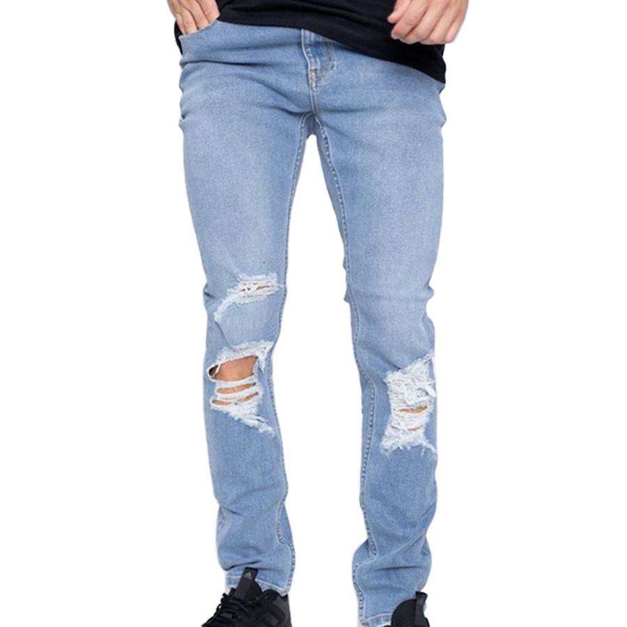 กางเกงยีนส์ทรงตรงสีขาวสไตล์สตรีทแฟชั่นใหม่สำหรับผู้ชาย เอวกลาง ทรงเข้ารูป ยืดได้ ราคาถูกมาก