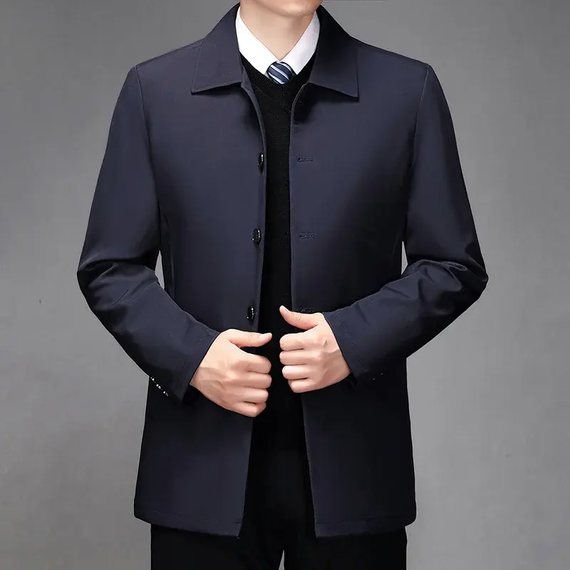 เสื้อแจ็คเก็ตแฟชั่นใหม่สำหรับผู้ชายวัยกลางคน สไตล์ลำลอง ติดกระดุมแถวเดียว สีกรมท่า สำหรับฤดูใบไม้ผลิและฤดูใบไม้ร่วง