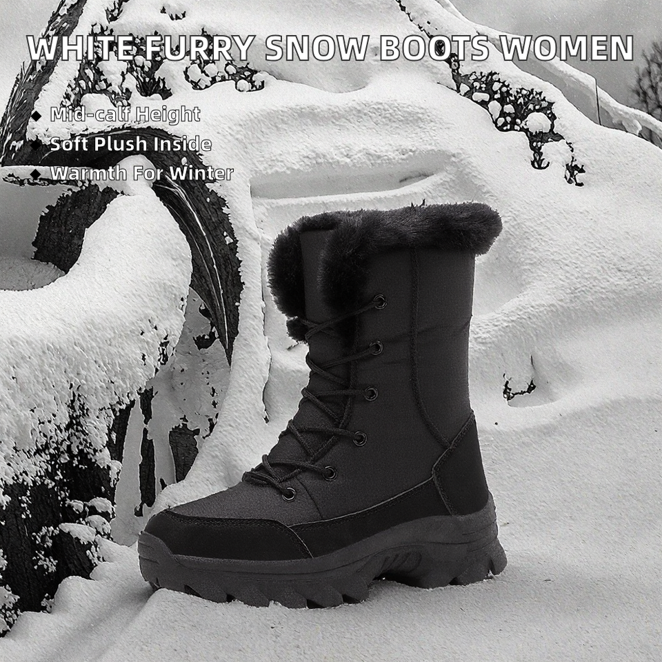 รองเท้าบูทหิมะขนเฟอร์สีขาวเรียบง่ายแฟชั่นใหม่สำหรับผู้ชาย ไซส์ใหญ่ 42 ฤดูใบไม้ร่วง ฤดูหนาว รองเท้าบูทข้อเท้าบุขนนุ่ม ราคาถูกสำหรับใส่กลางแจ้ง