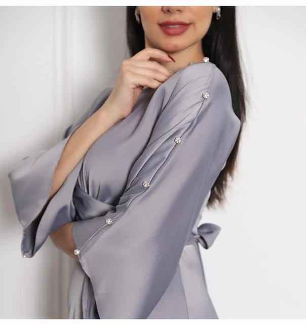 Dubai Abaya เดรสมุสลิมแขนยาวทรงหลวม,ชุดเดรสมุสลิมอาบายาทรงหลวมลำลองไซซ์ใหญ่สำหรับดูไบ