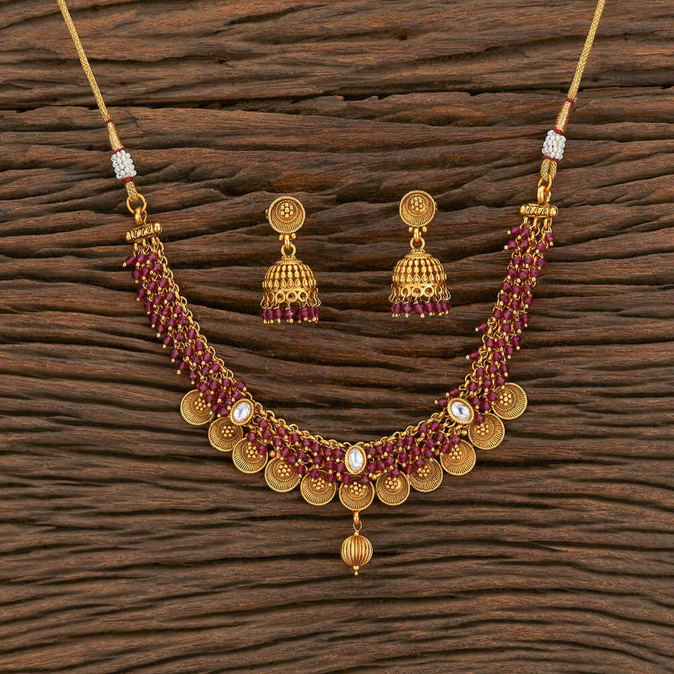 แฟชั่นใหม่สร้อยคอโบราณคลาสสิกชุบทองด้านยอดนิยม217347กับลุคอินเดียใต้