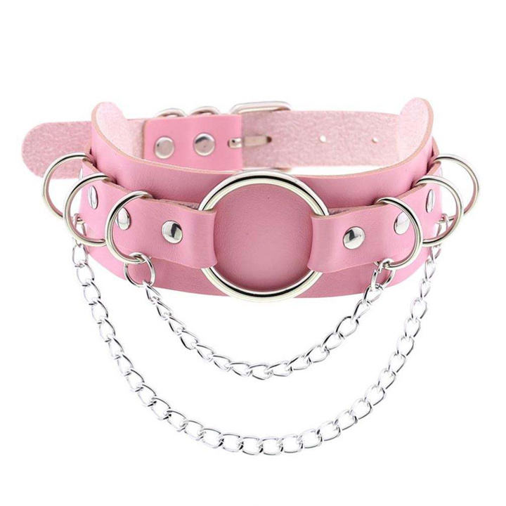 แฟชั่นใหม่ Punk Rock Punk DoubleหนังChokerเซ็กซี่ผู้หญิงโลหะOแหวนคอClavicle Chokerสร้อยคอ