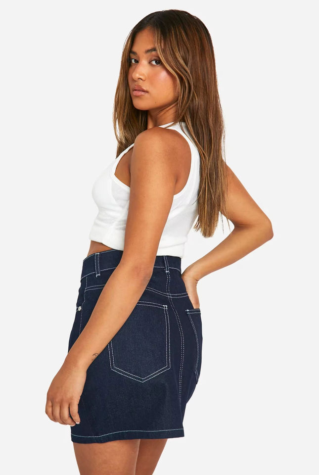 กระโปรงยีนส์ยืดทรงเรโทรแฟชั่นใหม่ ผ้าฝ้ายสีน้ำเงินเอวสูงทรงมินิ กระโปรงยีนส์สั้นแบรนด์แฟชั่นสำหรับผู้หญิง