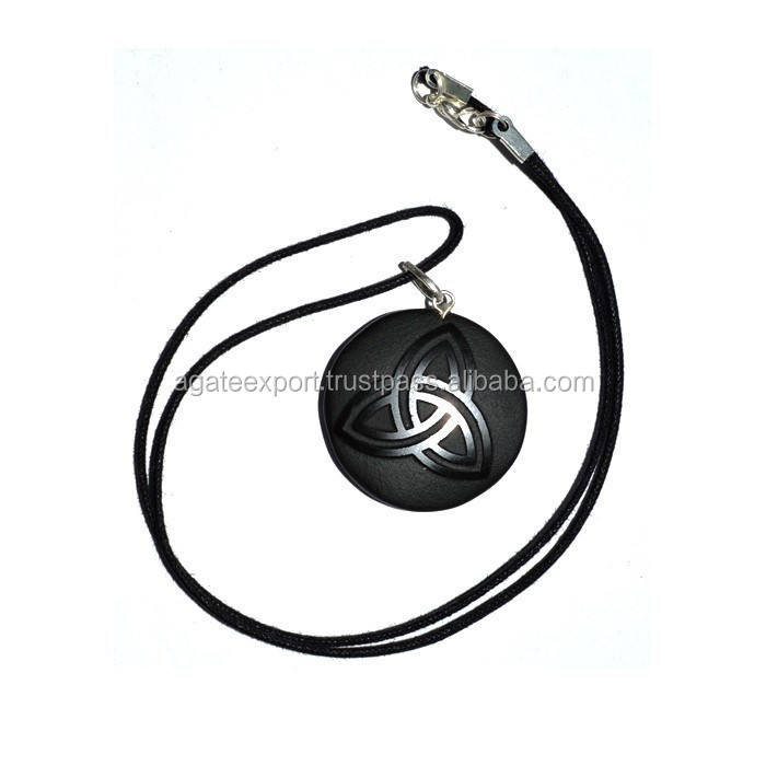 แฟชั่นใหม่จี้สร้อยคอเซลติกโมราสีดำทรงกลมแกะสลักได้จี้แฟชั่นและเสน่ห์