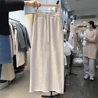 New Fashion Spring/Autumn Midi Skirt with Solid Team Waist String Banding Women's Perfect Match for Any Outfit