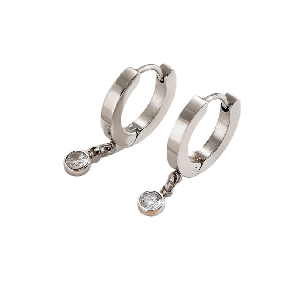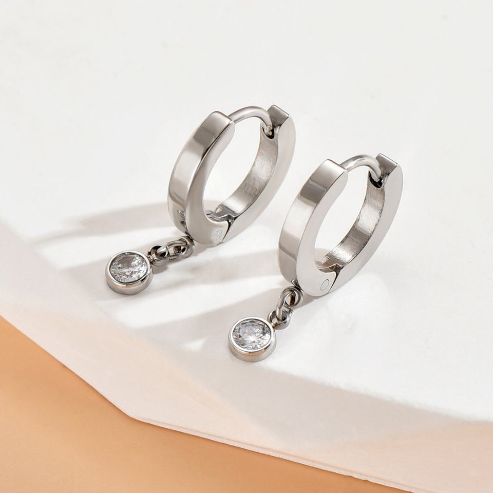 ต่างหูห่วงเพชรชุบทองสแตนเลสสุดอินเทรนด์สำหรับเครื่องประดับงานปาร์ตี้ของผู้หญิง เรียบง่ายและสง่างาม