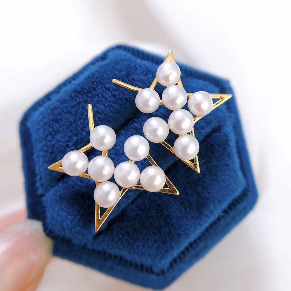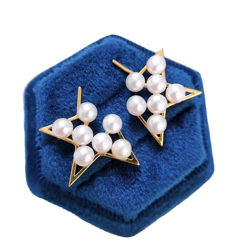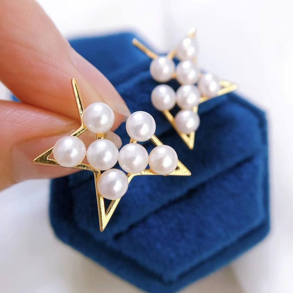 ต่างหูมุกแฟชั่นใหม่ รูปดาวครึ่งดวง ดีไซน์แบบเดียวกัน