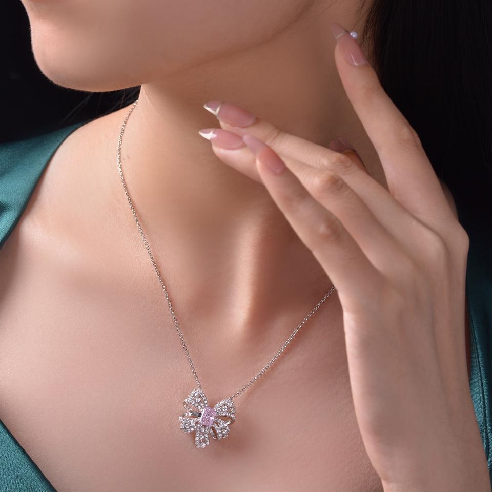สร้อยคอเครื่องประดับ925เงินสเตอร์ลิงแฟชั่นใหม่สำหรับผู้หญิงสร้อยคอจี้โบว์เซอร์โคเนียประดับลูกบาศก์เซอร์โคเนีย