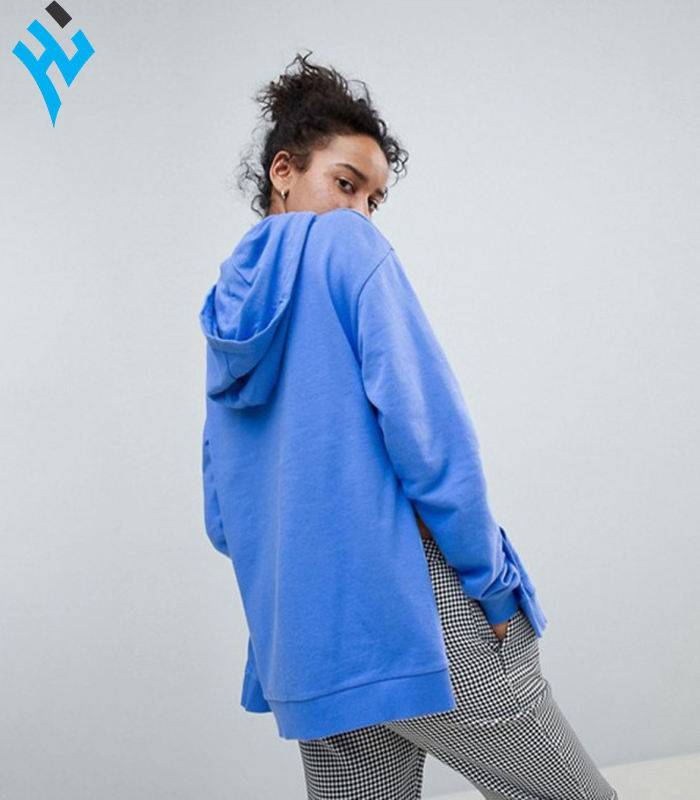 เสื้อฮู้ดแฟชั่นสีฟ้าใหม่สำหรับผู้หญิง,เสื้อฮู้ดแบบสวมศีรษะขนาดใหญ่เกินไปสำหรับสตรีทแบบแยกด้าน