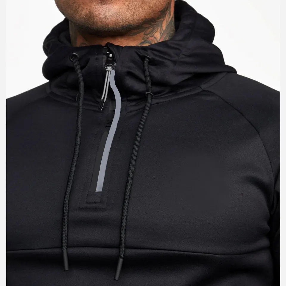 ชุดกันลมแฟชั่นใหม่สำหรับผู้ชายชุดวอร์มสำหรับกีฬาฤดูหนาวกันลมขี่จักรยานและวิ่งมีฮู้ดปกสีทึบให้บริการ