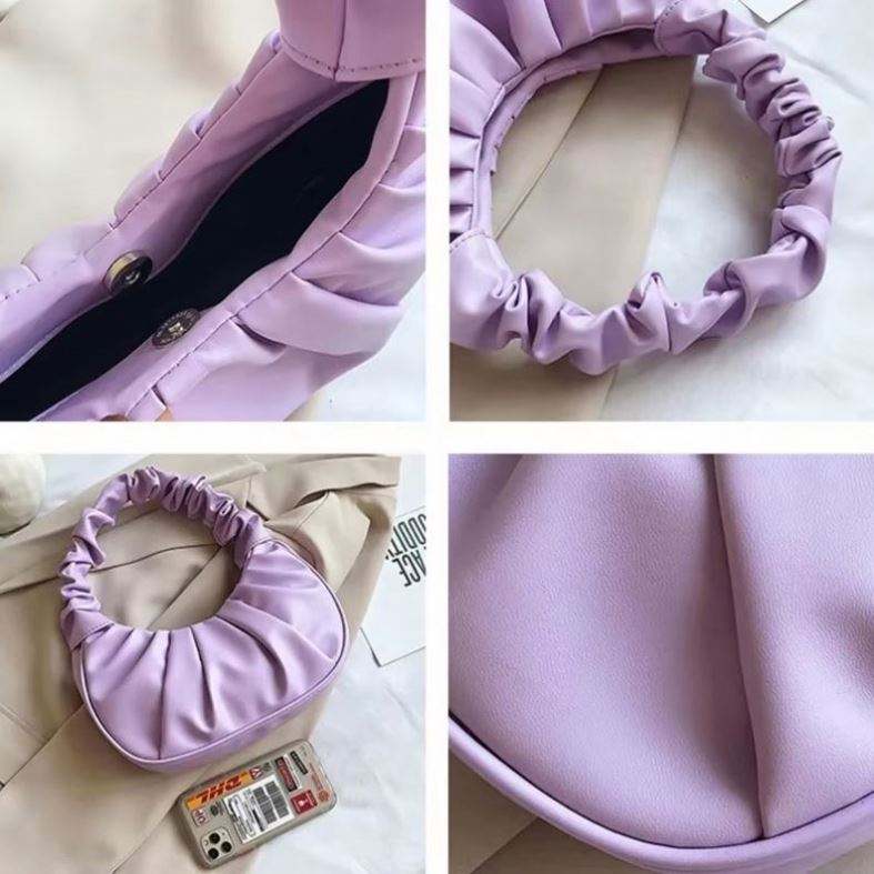 กระเป๋าถือใต้วงแขนแฟชั่นใหม่สไตล์สดใสสำหรับฤดูร้อน กระเป๋าสะพายไหล่ทรงจีบแบบฝรั่งเศส