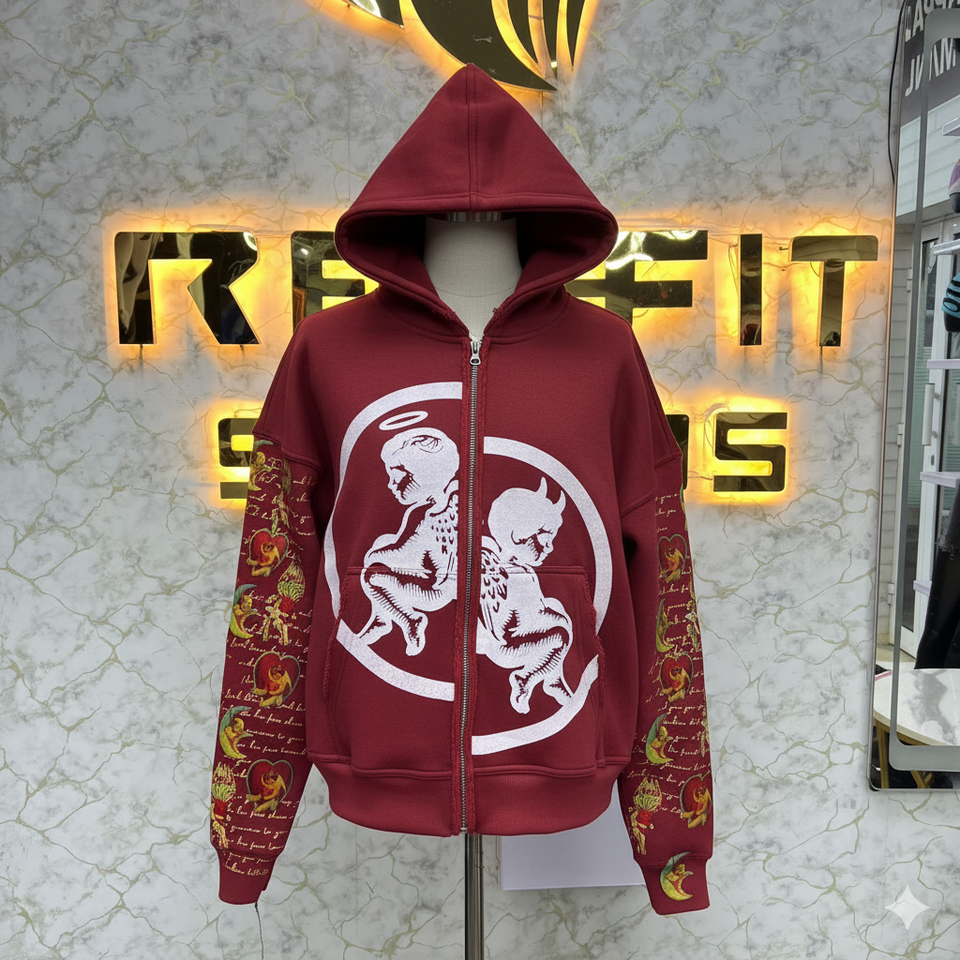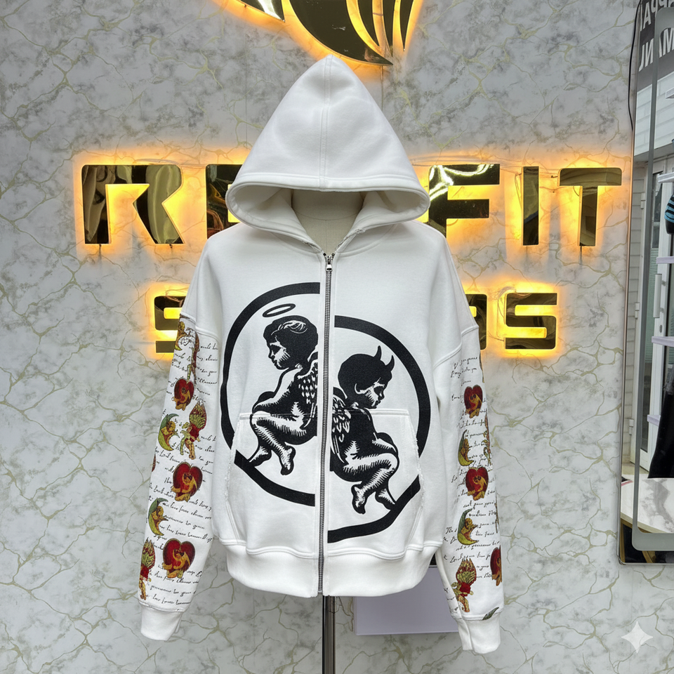 เสื้อฮู้ดซิปพิมพ์ลายมีซิปแฟชั่นใหม่เสื้อแจ็กเก็ตซิปรูดล้างกรดเสื้อขนแกะผู้ชายแนวสตรีทเสื้อมีฮู้ด
