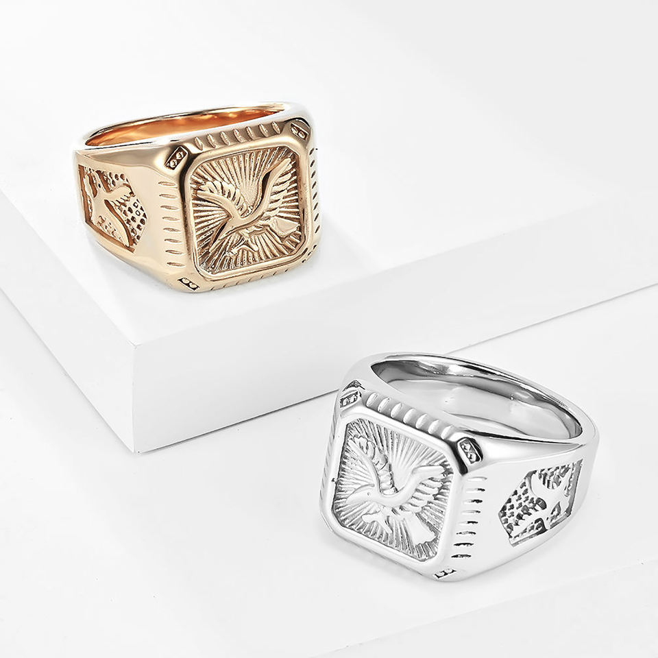 แหวนรูปนกอินทรีสำหรับผู้ชายสีทอง14K