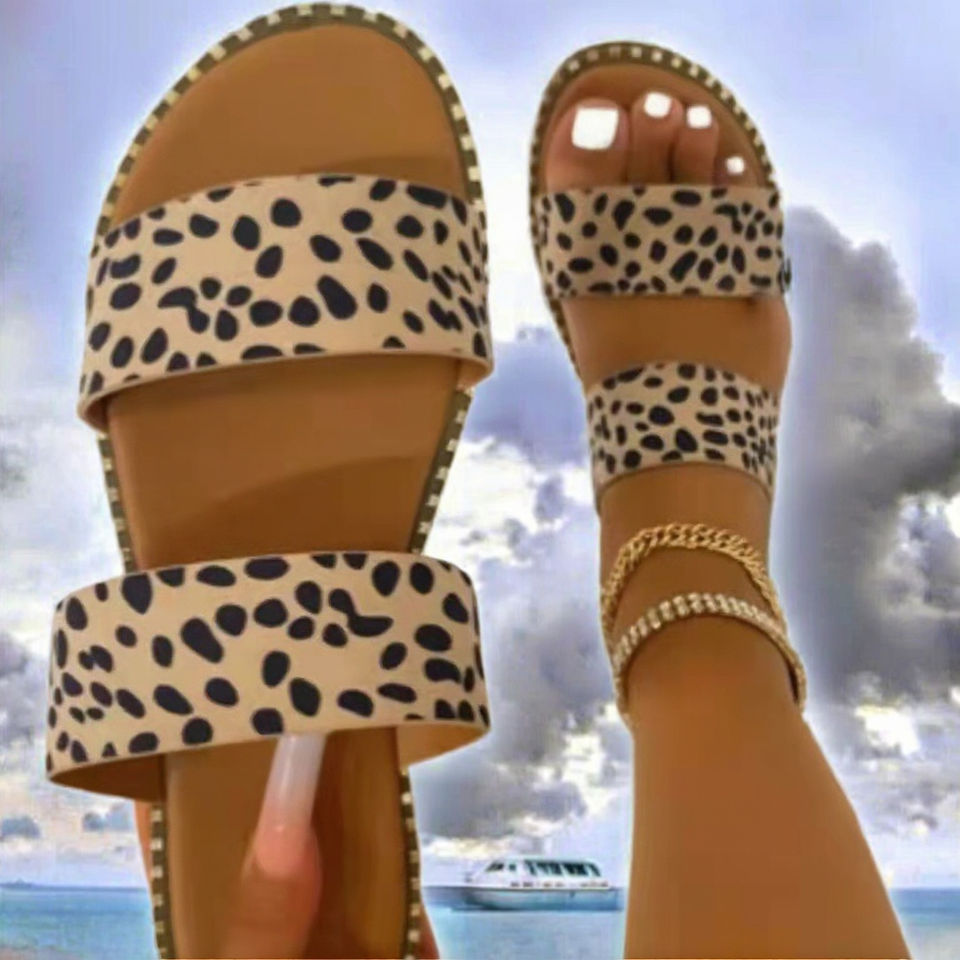 รองเท้าแตะแฟชั่นใหม่ ไซส์ใหญ่ 40-43 แบบสวม พื้นยาง พิมพ์ลาย สำหรับใส่ลำลองกลางแจ้ง รองเท้าลำลองผู้หญิง