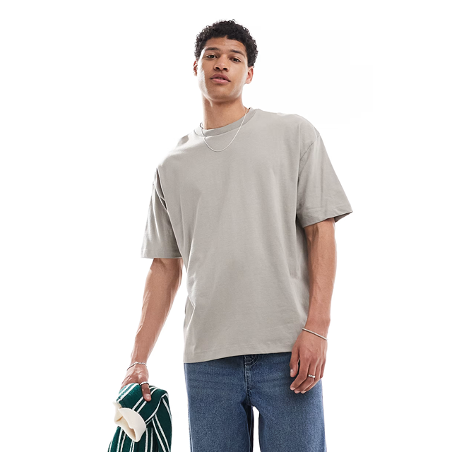 เสื้อยืดทรงหลวมสำหรับผู้ชายผ้าสิ่งทอปรับแต่งได้สไตล์แฟชั่นใหม่