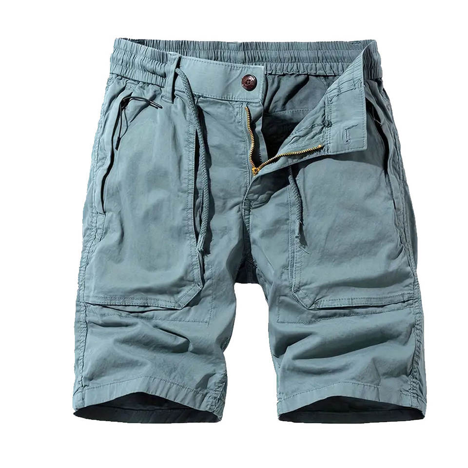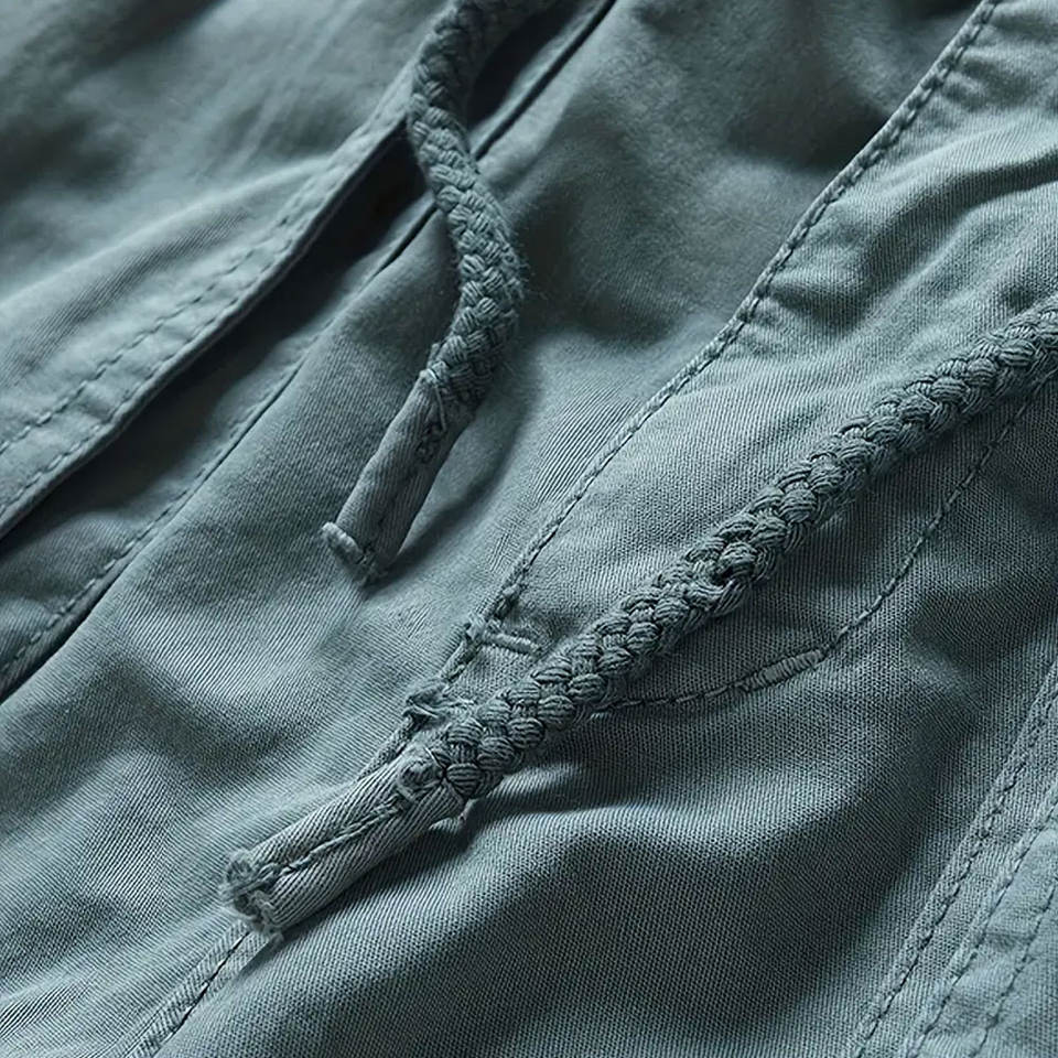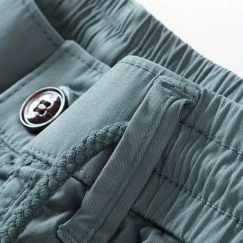 กางเกงขาสั้นคาร์โก้ผู้ชายแฟชั่นใหม่พร้อมกระเป๋าใส่สบายและปรับได้เอวมีเชือกรูดกางเกงขาสั้นผู้ชายคาร์โก้สบาย