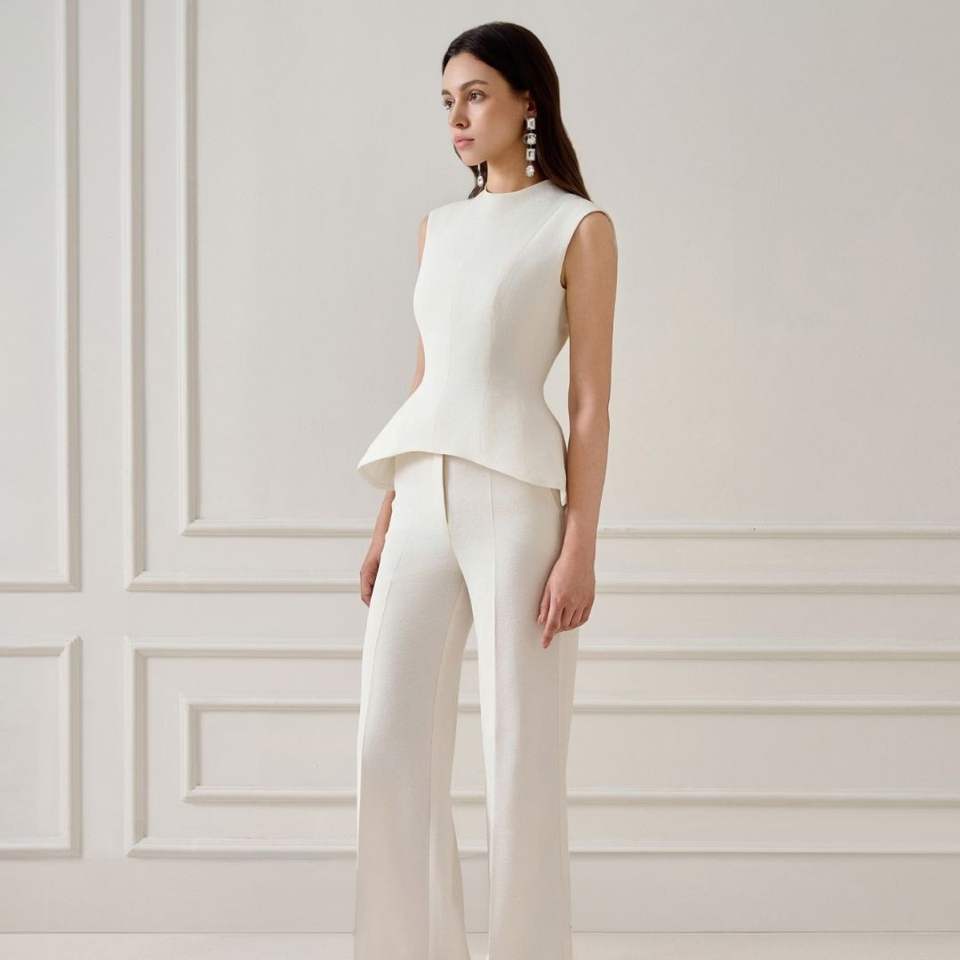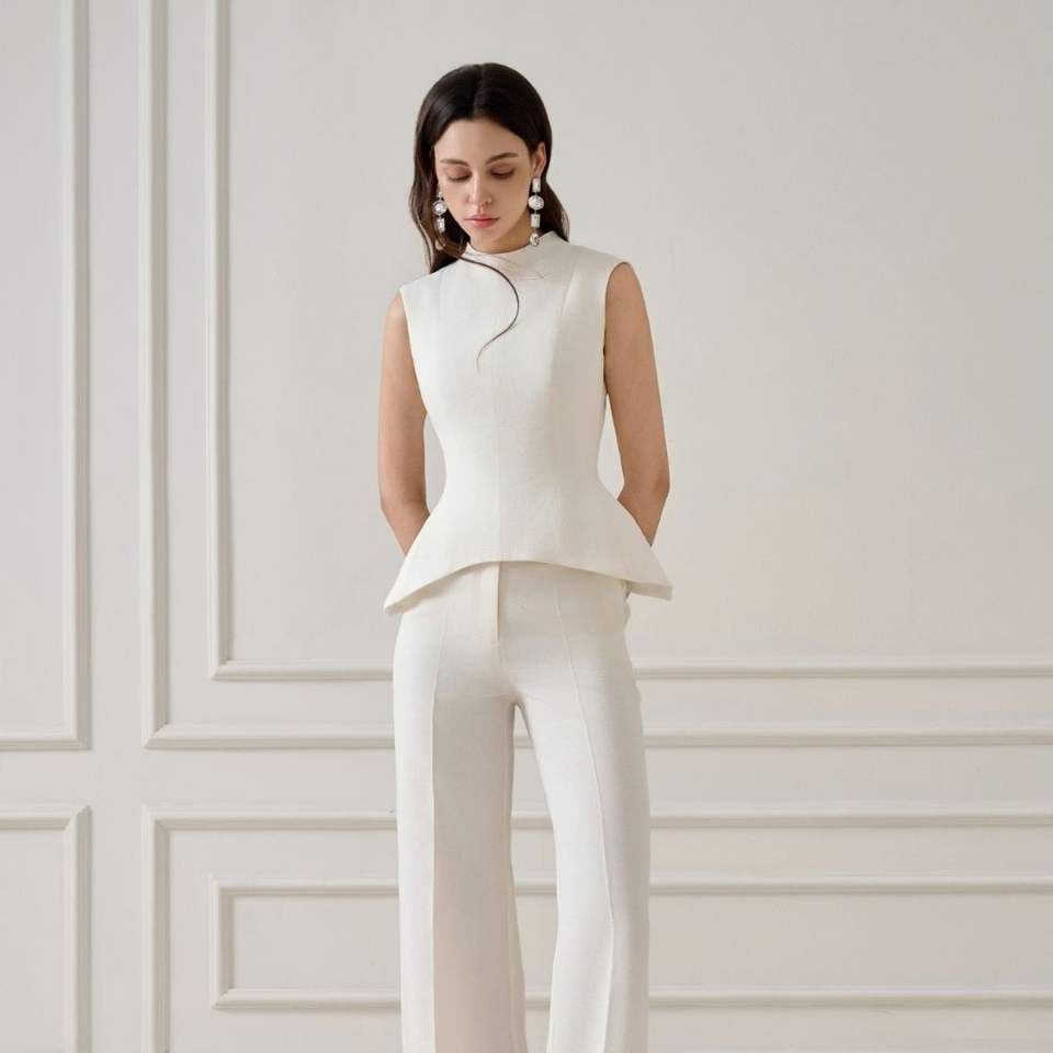เสื้อผ้าผู้หญิงแฟชั่นใหม่เสื้อแจ็คการ์ดทรายแขนกุดผ้าแจ็คการ์ดลายทรายหรูหราโลโก้ตามสั่งจากเวียดนาม