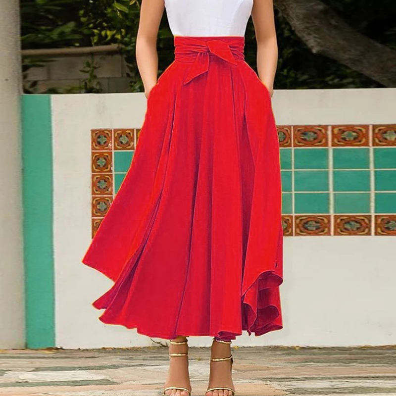 ชุดเดรสสายเดี่ยวแฟชั่นสำหรับเด็กผู้หญิง,กระโปรงยาวชายเสื้อมีโบว์สีพื้นสไตล์ยุโรปสำหรับเด็กผู้หญิง