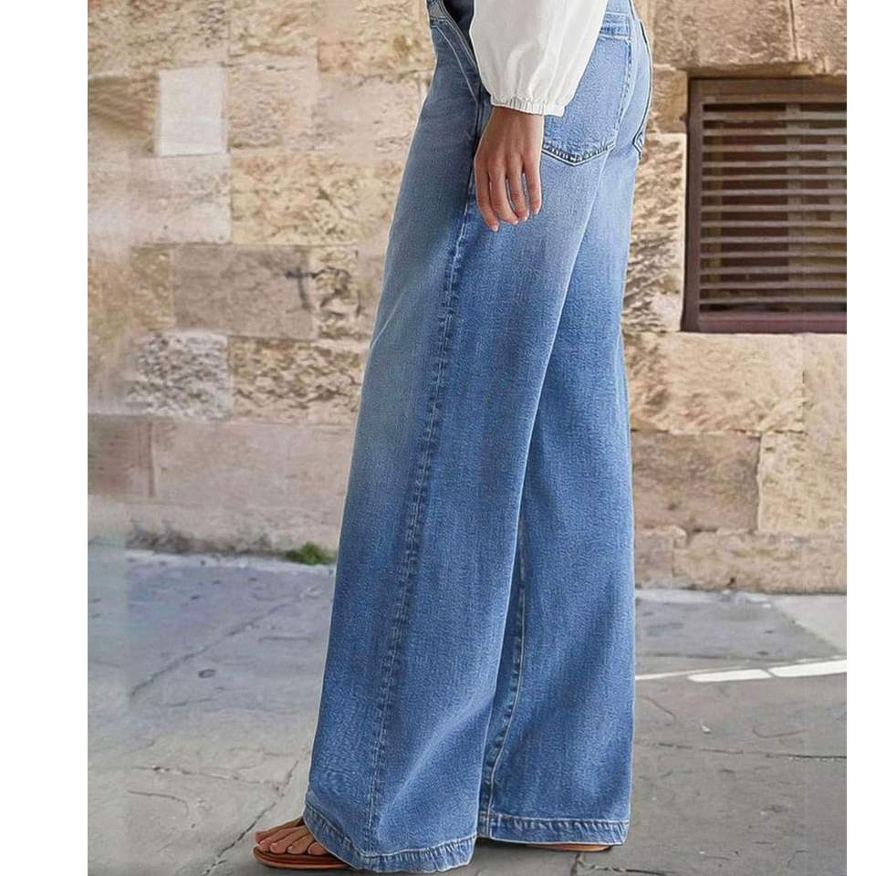 กางเกงยีนส์แฟชั่นใหม่สำหรับผู้หญิง เอวกลาง ทรงขากว้าง ผ้ายีนส์ฟอก ทรงหลวม แต่งตะเข็บ สไตล์ลำลองแนวสตรีท รับผลิตตามสั่ง ขายส่ง