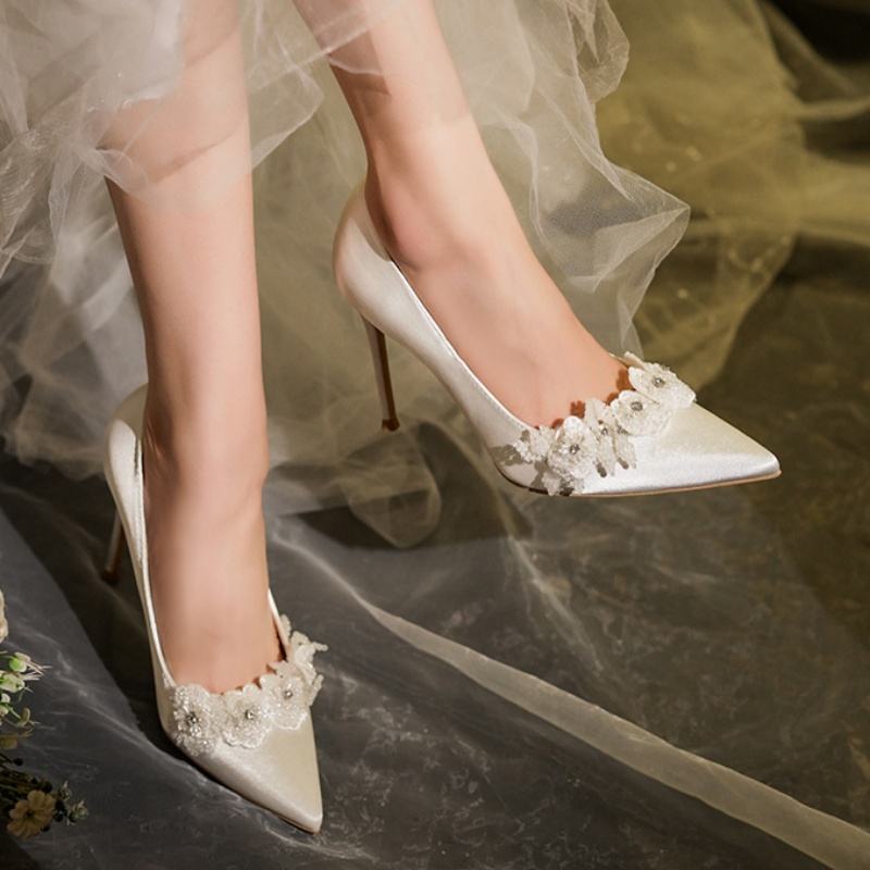 New Fashion Women Pumps Shoes White wedding shoes Banquet fashionable high-end rhinestones decoration pointed hollow high heels