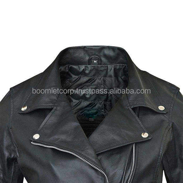แจ็คเก็ตนักขี่จักรยานหนัง geuniune ของผู้หญิงแฟชั่นใหม่แจ็คเก็ตนักแข่งรถแขนยาวลำลองเข้ารูปสีทึบมีซิปไซส์ใหญ่พิเศษ