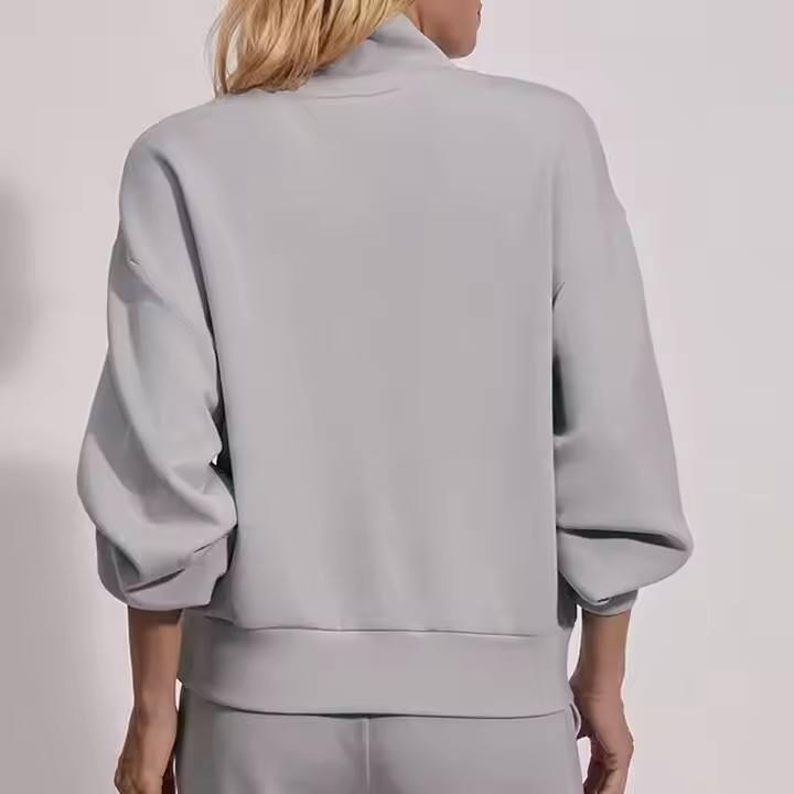 เสื้อสเวตเตอร์คอเต่าแขนยาวแบบมีซิปครึ่งตัวของผู้หญิงเสื้อฮู้ดลำลองแบบสวมหัวสีทึบแฟชั่นใหม่