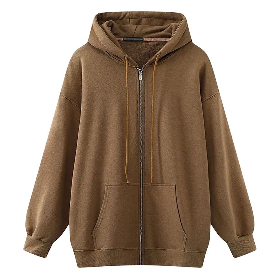 เสื้อฮู้ดคาร์ดิแกนแขนยาวแฟชั่นใหม่สำหรับผู้หญิง มีซิปโลโก้ด้านหน้าและด้านหลัง พร้อมกระเป๋า เหมาะสำหรับใส่ลำลอง