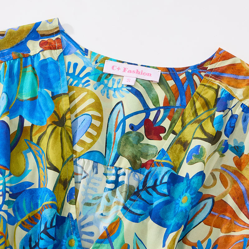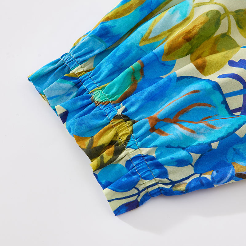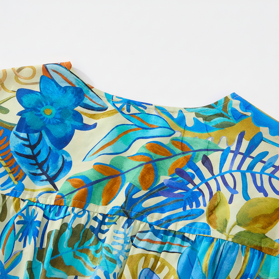 เดรสผ้าป๊อปลินคอตตอนพิมพ์ลายดิจิทัลทรงเอไลน์ แขนสั้น คอวี ดีไซน์ใหม่สำหรับผู้หญิง สวมใส่สบายๆ ในชีวิตประจำวัน เป็นมิตรต่อสิ่งแวดล้อม เหมาะสำหรับฤดูร้อน