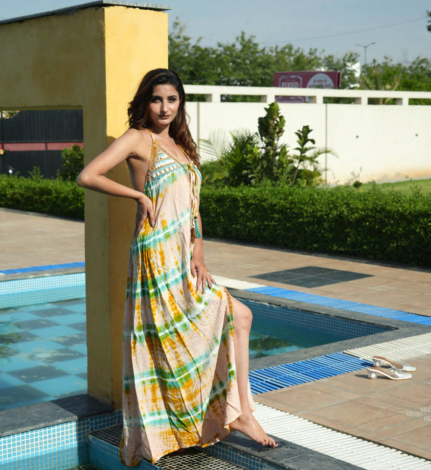 New Fashion Women's Designer Hand Embroidery Tassel Tie Dye Maxi Long Dress 1 Piece