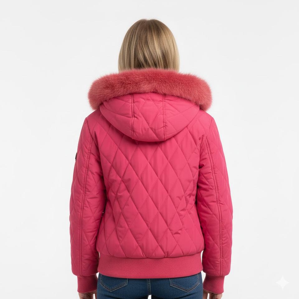 เสื้อแจ็คเก็ตพาร์กาขนเฟอร์เทียมสีชมพูแฟชั่นใหม่สำหรับผู้หญิง พร้อมฮู้ดและระบบทำความร้อน