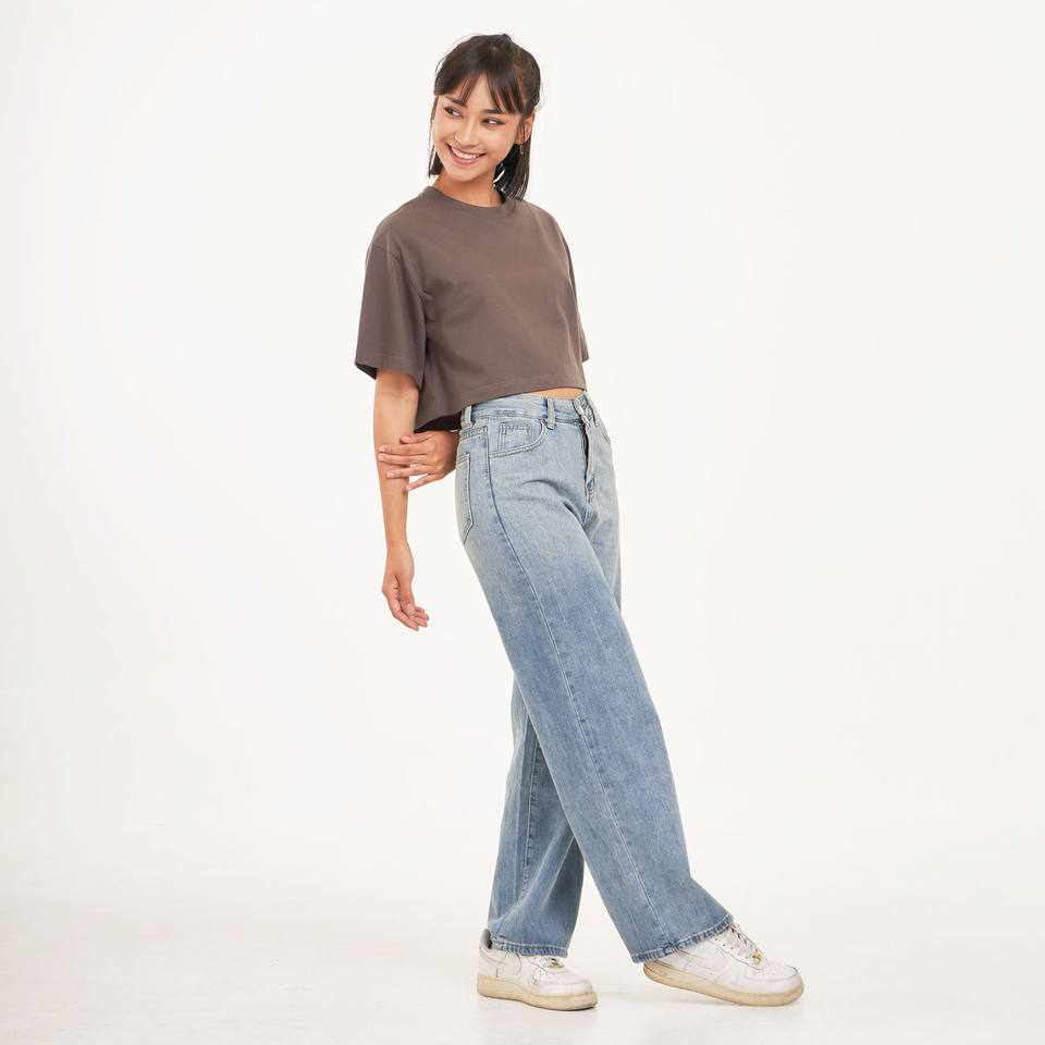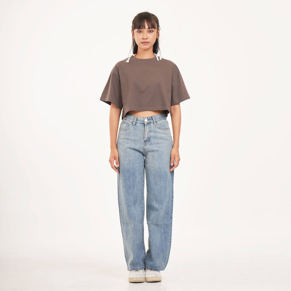 เสื้อครอปท็อปโอเวอร์ไซส์แฟชั่นใหม่ปี 2024 สำหรับผู้หญิง ผ้าฝ้าย 100% แขนสั้น คอกลม ผลิตจากโรงงานในประเทศไทย