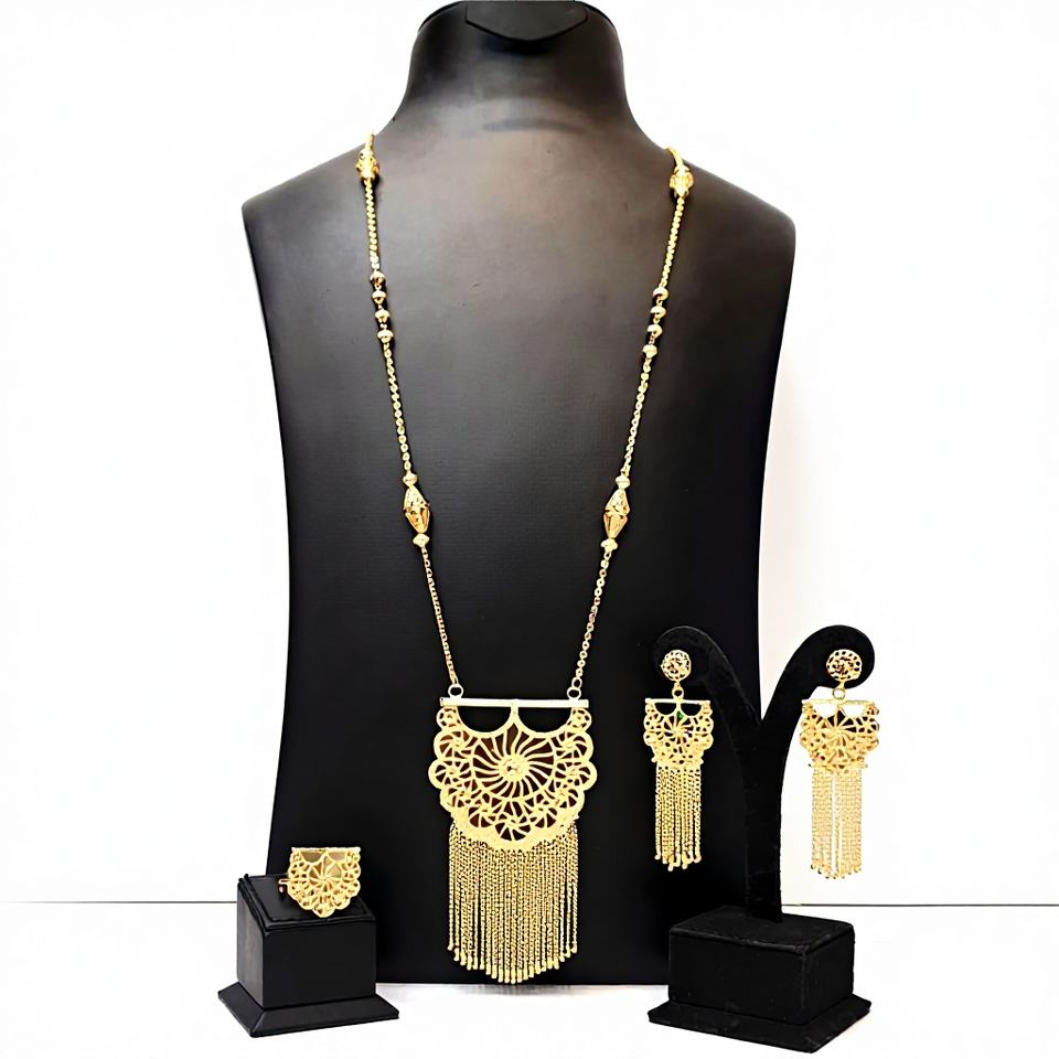 ชุดสร้อยคอจี้ทองคำชุบ 24K ดีไซน์ทันสมัยสำหรับผู้หญิง สไตล์อาหรับ เครื่องประดับชั้นดีสำหรับงานแต่งงานและงานปาร์ตี้