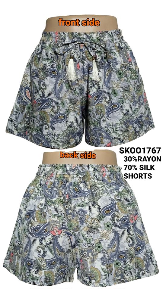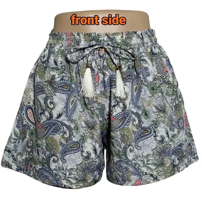 กางเกงขาสั้นผู้หญิงลายดอกไม้ แฟชั่นวินเทจใหม่ ผ้าไหม 70% เรยอน 30% ระบายอากาศได้ดี เป็นมิตรกับสิ่งแวดล้อม เอวกลาง ยางยืด ทันสมัย
