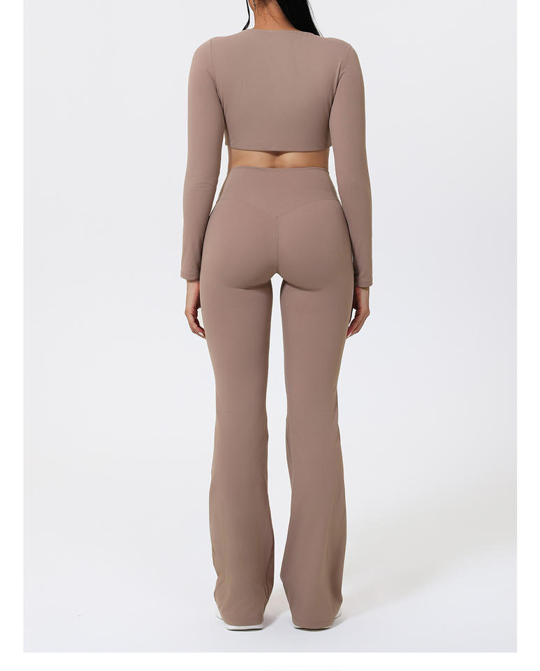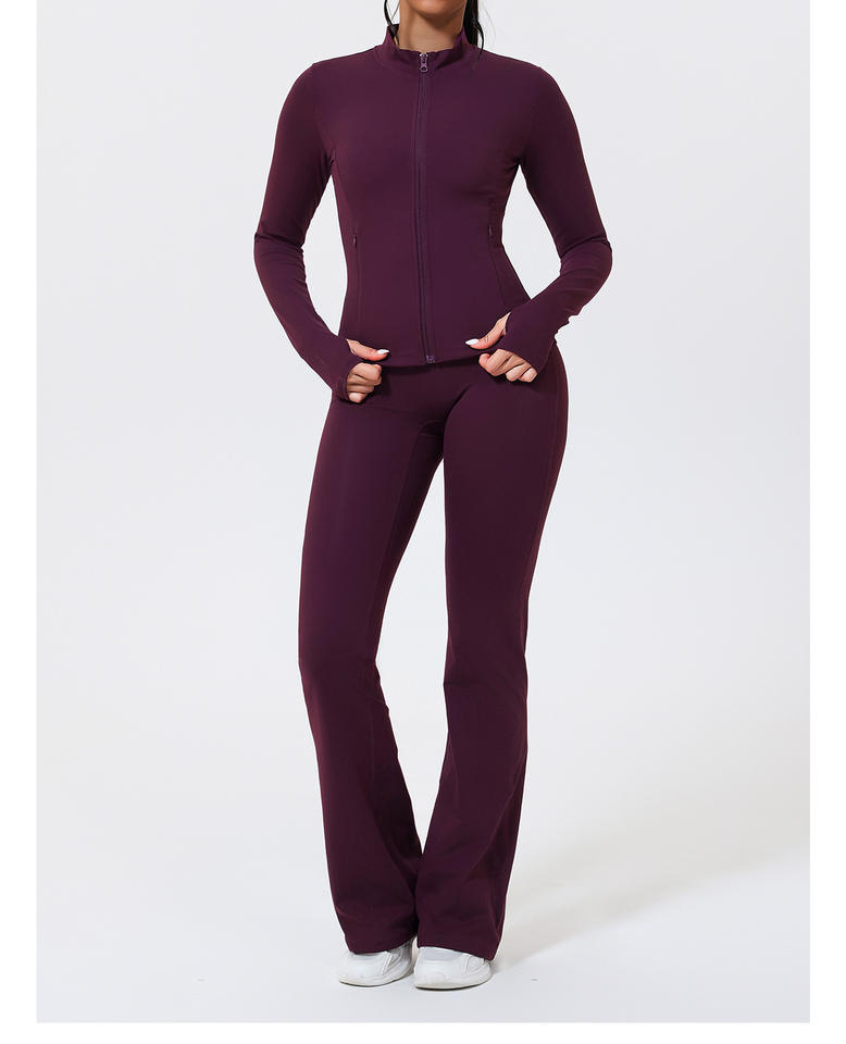 ชุดออกกำลังกายแฟชั่นใหม่ 2 ชิ้น เสื้อแจ็คเก็ตแขนยาวกันลมระบายอากาศได้ดีพร้อมซิป กางเกงขายาวเอวสูงทรงบาน สำหรับฟิตเนสและโยคะ