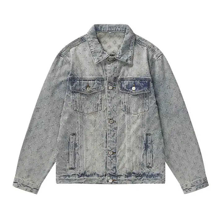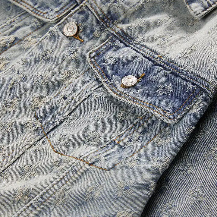 แจ็กเก็ตยีนส์สไตล์วินเทจสำหรับผู้ชายกันลมเข้ารูปแบบกำหนดเอง