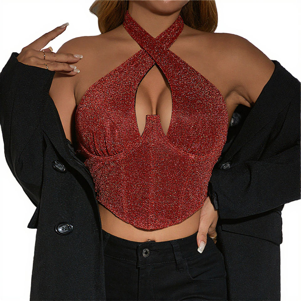 เสื้อกล้ามแฟชั่นใหม่ สไตล์ลำลอง เซ็กซี่ แซ่บ ดีไซน์กระดุมไขว้หลัง โชว์หลัง ทรงปกติ ระบายอากาศได้ดี เหมาะสำหรับฤดูร้อน แต่งโบว์ พร้อมห่วงเหล็ก