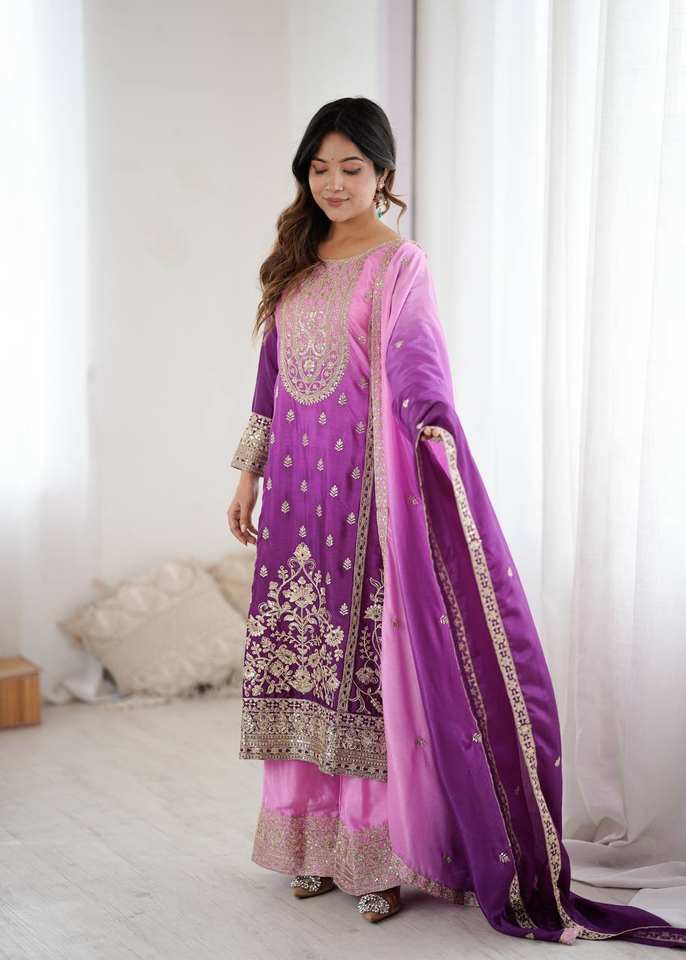 คอลเลคชั่นแฟชั่นใหม่ ชุดคุर्ติ 3 ชิ้น ดีไซน์หรูหรา พร้อมกางเกงพลัสโซทรงบาน และผ้าคลุมไหล่