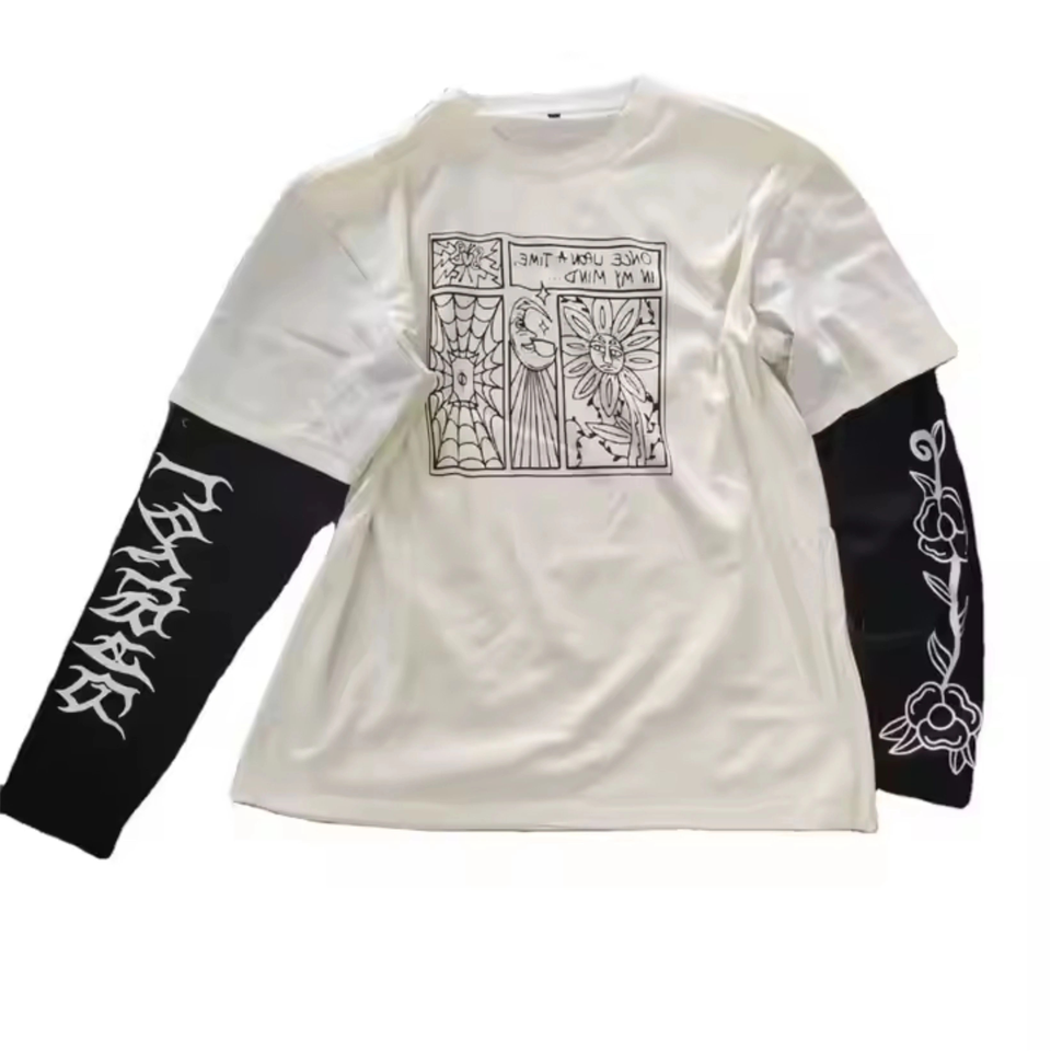 เสื้อยืดผู้ชายแฟชั่นใหม่ พิมพ์ลายโลโก้คุณภาพดีที่สุด ผ้าฝ้าย 100% แขนยาวสองชั้น ทรงโอเวอร์ไซส์