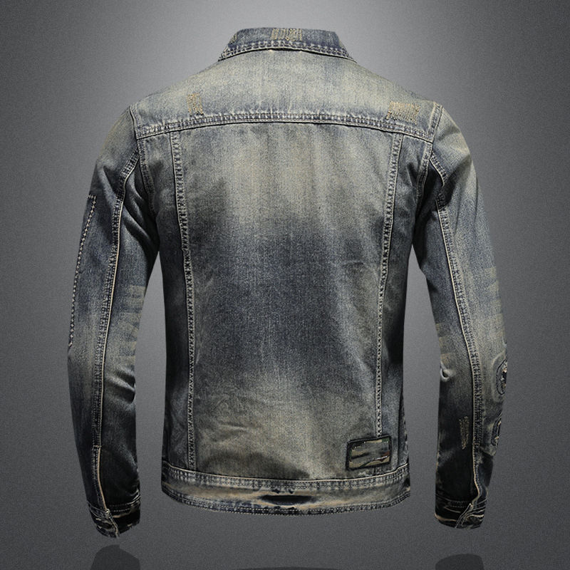แจ็กเก็ตยีนส์สำหรับผู้ชายเสื้อผ้าแนวสตรีทฟอกฟอกฟอกฟอกซีดตามสั่งทันสมัย