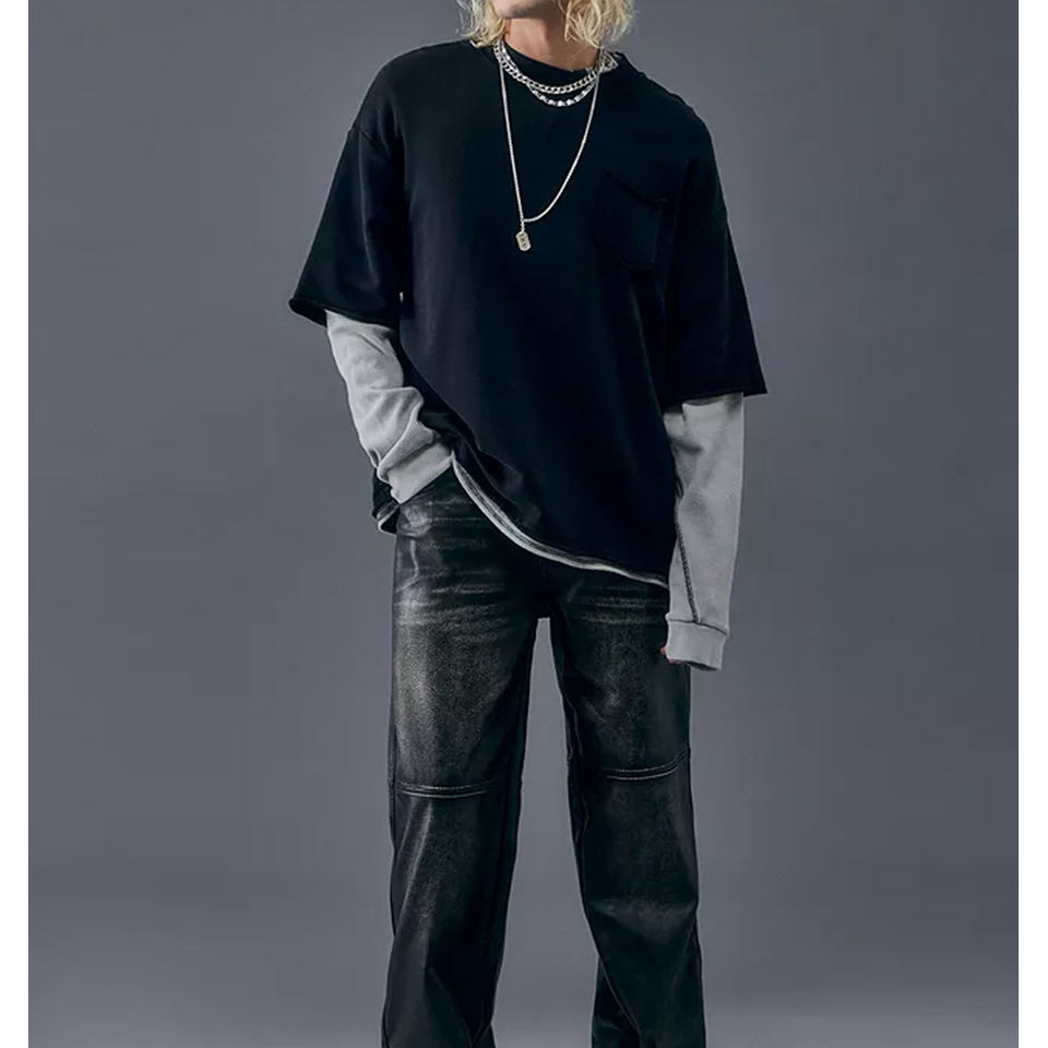 เสื้อยืดดีไซน์เนอร์แฟชั่นใหม่ แขนสองชั้น ผ้าฝ้าย 100% แขนยาว เย็บสองชั้น สไตล์ไฮสตรีท แห้งเร็ว