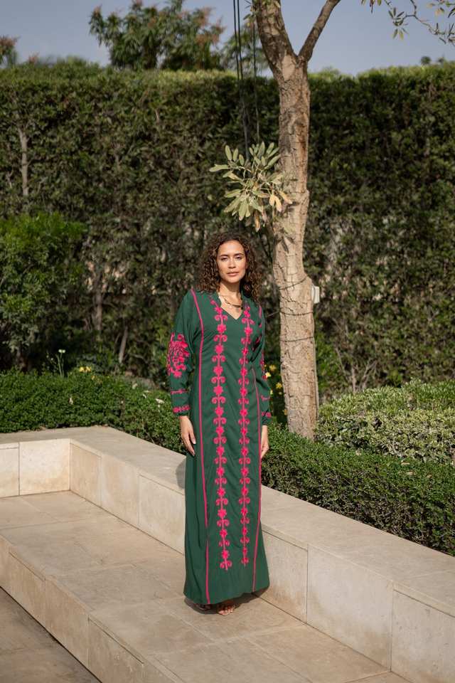 เดรสแขนยาวลายดอกไม้หรูหราแฟชั่นใหม่ชุดเดรสลำลองคอวีลูกไม้เย็บปะติดปะต่อกันแนวสตรีทน่ารักแบบโบฮีเมียนสำหรับวันหยุดพักผ่อน