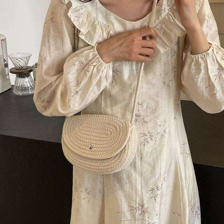 กระเป๋าสะพายข้างครึ่งวงกลมแบบถักโครเชต์สำหรับผู้หญิงทันสมัยพร้อมลายพิมพ์รูปสัตว์