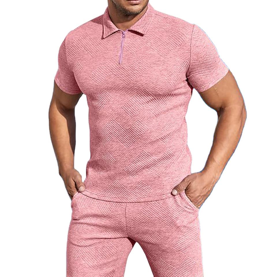 ชุดเสื้อผ้าสองชิ้นแฟชั่นใหม่สำหรับผู้ชายไซส์ใหญ่พิเศษฤดูร้อนเสื้อโปโลแขนสั้นระบายอากาศได้ดีแห้งเร็ว