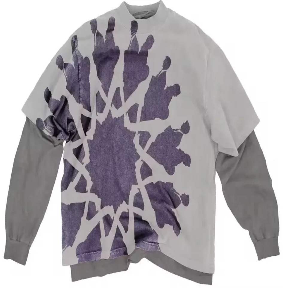 เสื้อยืดคอกลมสำหรับผู้ชายกางเกงขาสั้นแขนสองชั้นทรงโอเวอร์ไซซ์ลำลองดีไซน์ใหม่สำหรับฤดูร้อน